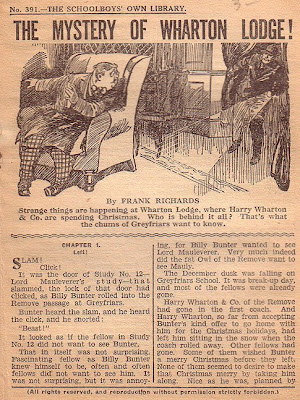 The war and paper shortages brought an end to the publication of the English "mags" and times have changed. It is true that the life at Greyfriars, which was completely foreign to most of the readers, certainly the Canadian readers, was faintly snobbish and depended on the old class system. Yet the stories stressed such things as fair play, honesty and team spirit ("for the honor of the Fourth") which sometimes seem overlooked by the uplifters do-gooders and planners who envisage a society where all men are supposedly equal.