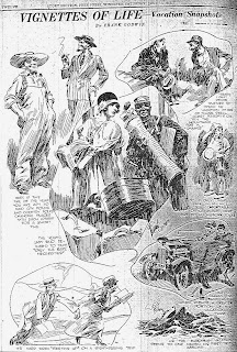 Dogs, coyotes and all kinds of animals have been endowed with amazing individuality by Herriman in his drawings. Generally he makes them humorous, but sometimes he makes them sad, and always through their lives run a curious streak of fantasy. Herrriman was probably a man born to be a teller of fairy tales for children. The exigencies of life put him to work as a newspaper cartoonist.