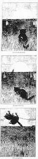 Patterning his scheme after a popular comic, he arranged a pile of lumber overhanging the path along which the night watchman would make his rounds.
