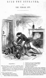 Other “crime and crinoline” titles on sale throughout the sixties were Jack Harkaway author Bracebridge Hemyng’s The Women of London Disclosing The Trials and Temptations of a Woman's Life in London With Occasional Glimpses of a Fast Career, the pseudonymous Rose Mortimer; or, The Ballet-Girl's Revenge Being the Romance and Reality of a Pretty Actress's Life Behind the Scenes and Before the Curtain By a Comedian of the T. R. Drury Lane, and Edward Ellis (probably Charles Henry Ross) Ruth the Betrayer; or, The Female Spy, a satire on James Malcolm Rymer’s 1843 penny blood title Ada the Betrayed; or, The Murder at the Old Smithy.