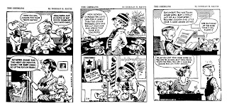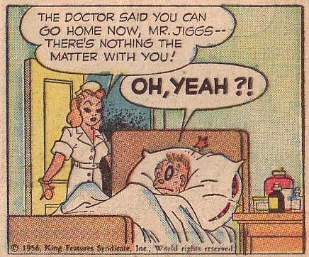 After his meal he hears a sound, hides his meal , and engages in a knock down brawl with his bald scarecrow of a wife;
