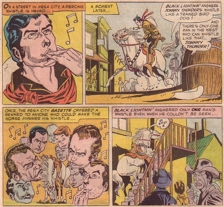 All Star Western was canceled with no. 119 (June-July 1961) in the middle of a two part story featuring Johnny Thunder and a beautiful masked gunwoman named Madame .44. I had been a little upset by the fact that Johnny Thunder had changed his marvelous fringed jacket for a red shirt --much more upsetting was the demise of All Star Western, one of the best drawn comic book westerns of the fifties.