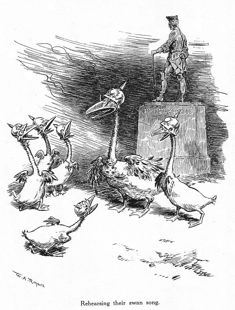 After McCay had advanced in his draughtsmanship by working in the museum, and had attained some fame, his fancy turned to newspaper drawing. He worked for a time on two Cincinnati papers, and then, in 1902, he went to New York. Here his cartoons were an immediate success. He was employed on several big New York dailies, going from one to another with advancing salary and increasing fame. He had the respect of his fellow artists and was popular generally; he was a prominent citizen. He belonged to the Lamb’s club, the Friars, the Freemasons, the Inner Circle, Cavalry Post 101 of the American Legion, the Royal and Mystic Order of Elephants, a fraternal organization of the Brooklyn navy yard -- and possibly others. And when he died, on July 26, 1934, they loaded him with flowers.