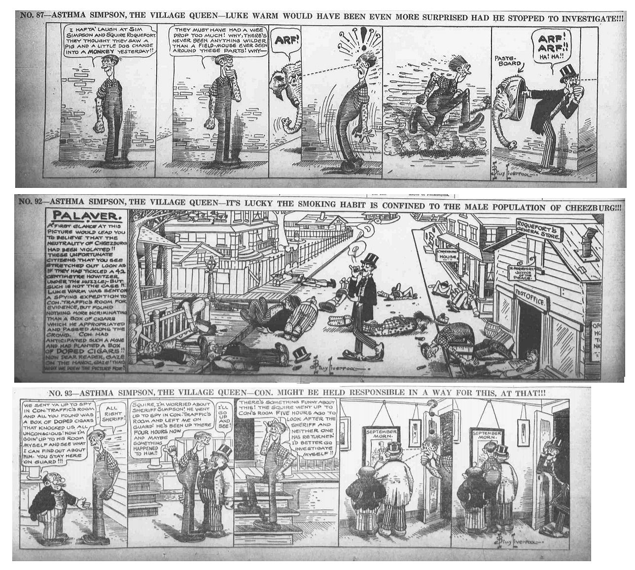 Briggs, one of America's best-loved cartoonists, was born in Reedsburg Wisconsin on 5 Aug 1875 and landed his first job at age ten as a newspaper delivery boy in Dixon, Illinois. He began as a sketch artist on Hearst’s St. Louis Globe-Democrat in 1896 at $10 a week and then moved on to the New York Journal. He was sent to Chicago to work on Hearst’s Chicago Herald and Chicago American where he created A. Piker Clerk. His first Tribune cartoon (below) appeared 15 Feb 1914. Briggs remained with the Tribune until his death of pneumonia at 54 years of age.