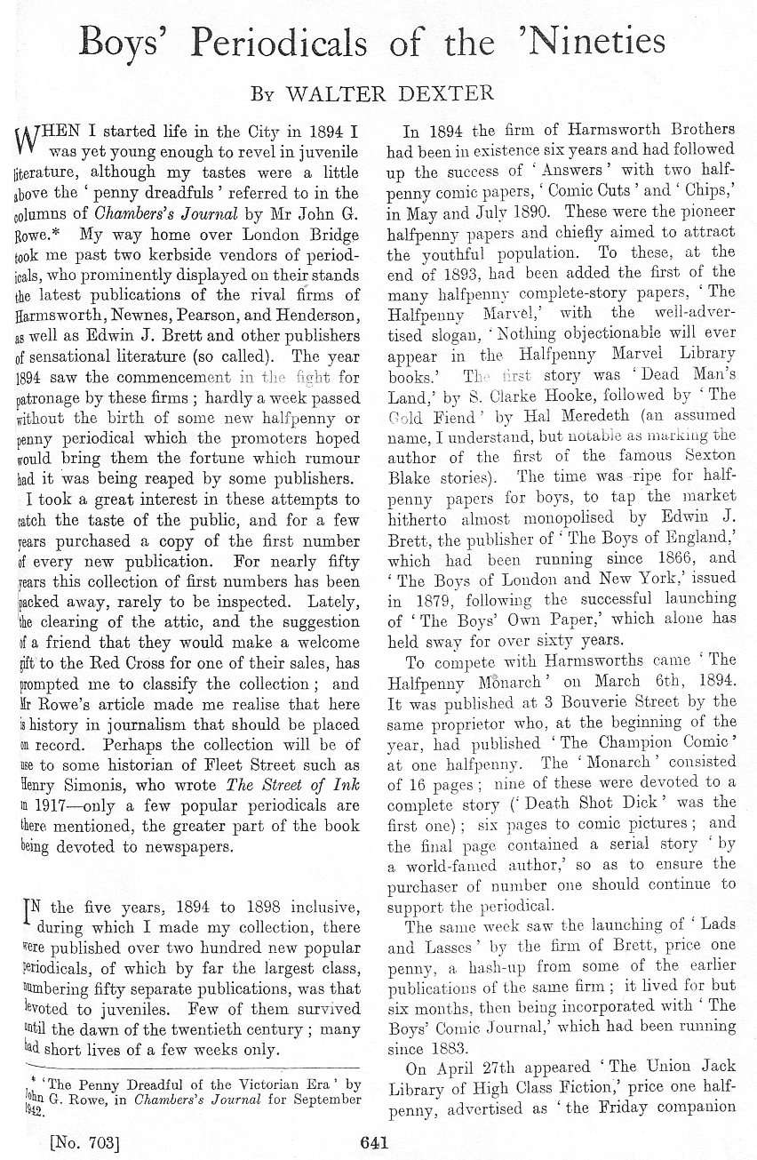 Outside of the realm of comic strips Bill also wrote “Pulps and Dime Novels” in The Handbook of American Popular Literature (Edited by Thomas Inge, Greenwood Press, 1988.) Bill informed me that his extensive revision, “Pulps, Penny Dreadfuls, and Dime Novels” would be included in a new Greenwood volume due out in 2002. I have never found the revision and am not really sure if it ever saw print. Bill contributed “That Nonpareil All-American Boy reaches age 80,” to the Smithsonian Magazine, June 1976. The All-American Boy was, of course Gilbert Patten’s Frank Merriwell.