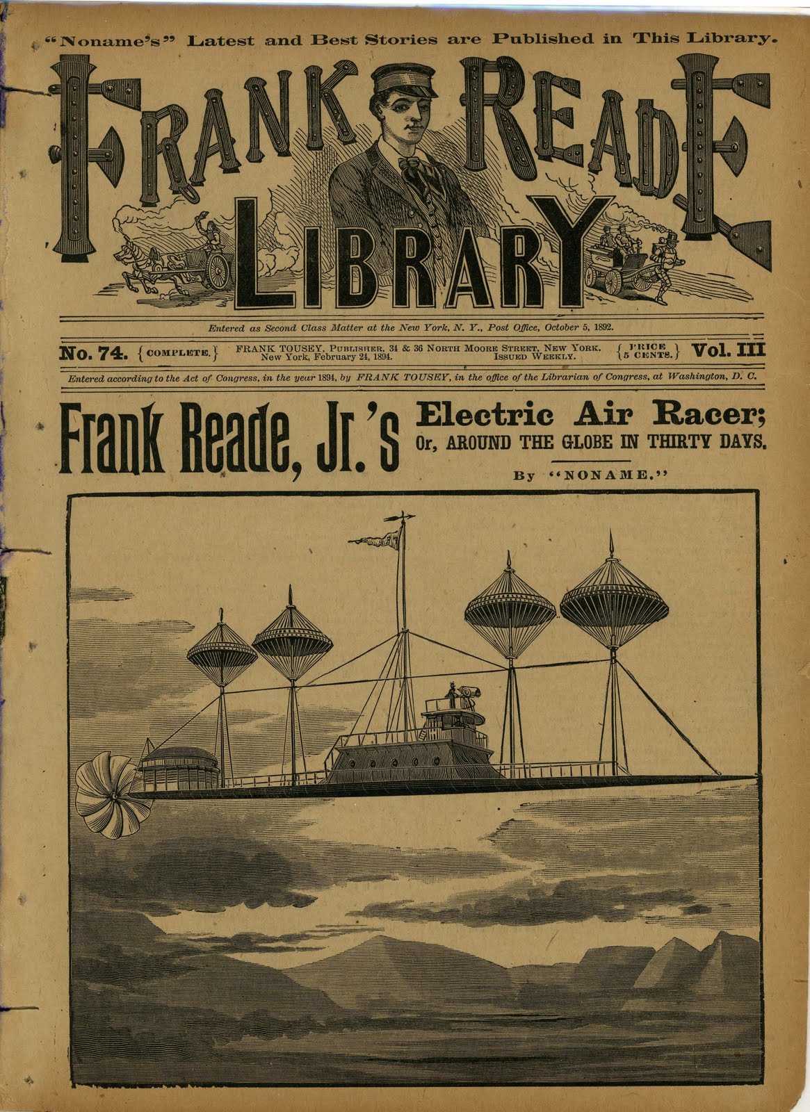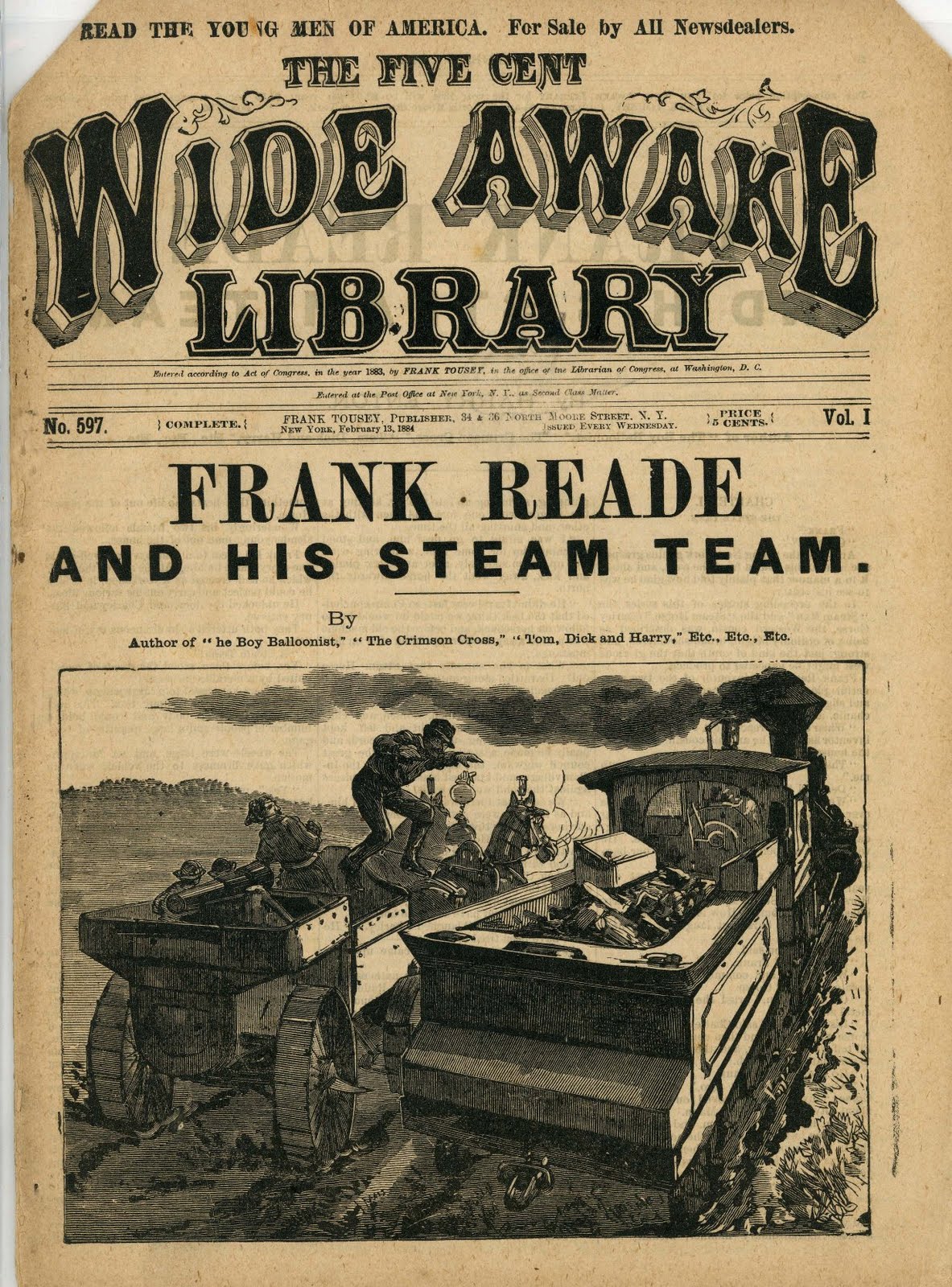 Harry Enton wrote the first three Frank Reade stories and the majority afterwards were penned by Luis Senarens (1863-1939). Senarens began writing at the age of fourteen and it was Jules Verne’s writing that influenced him when he began writing for Frank Tousey’s publications.