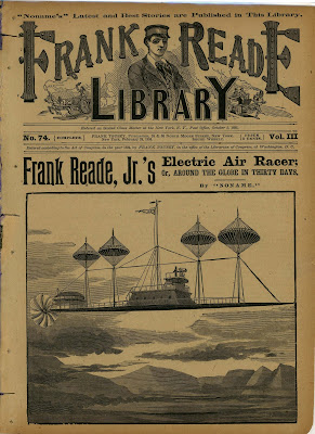 Frank Reade stories were based on steam technology while electricity begat Frank Reade Jr. Frank Reade’s airships and submarines were usually equipped with powerful searchlights which illuminated adventures above and blow the sea.