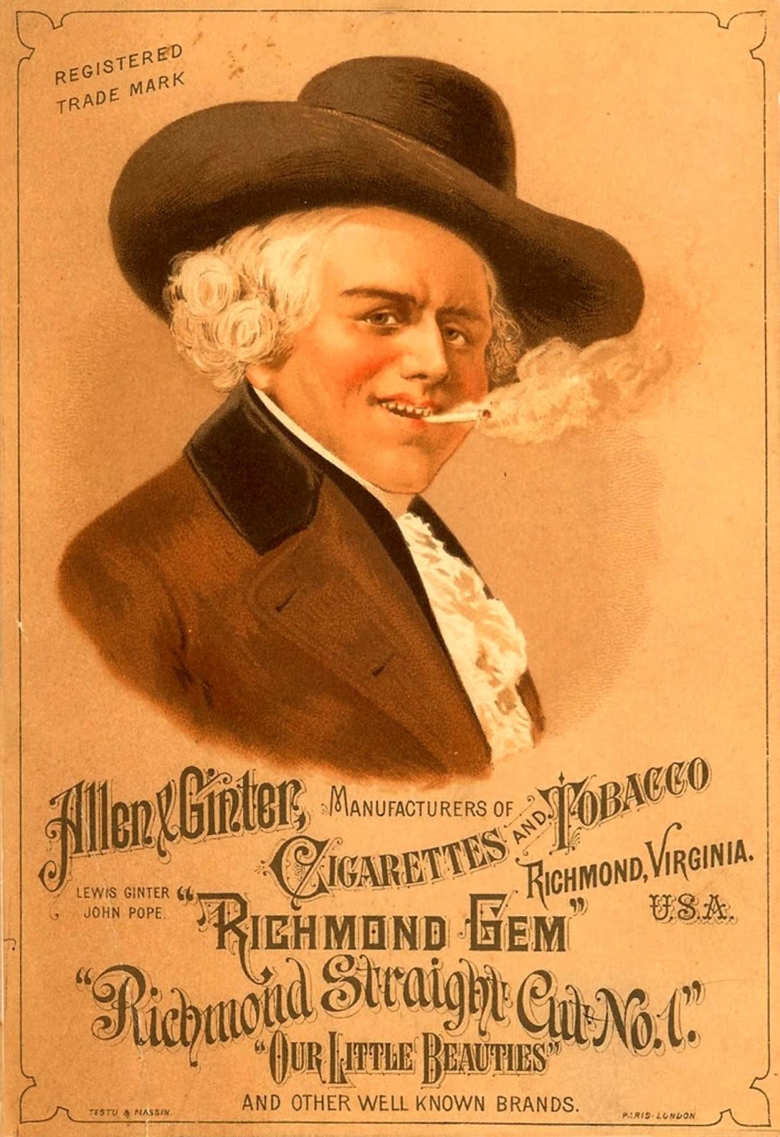 velvet jacket, a bright-colored scarf and wide brimmed sombrero. Several