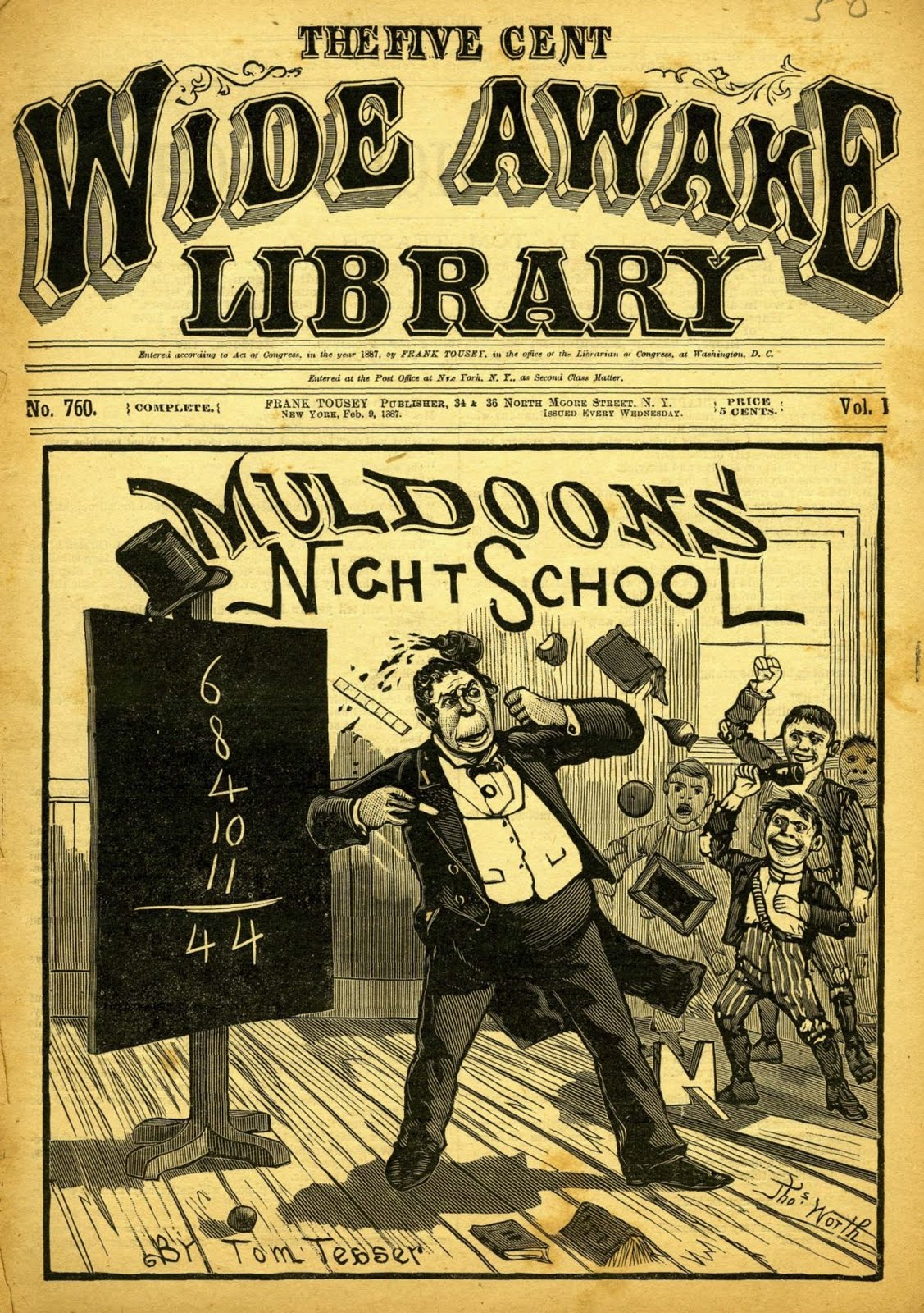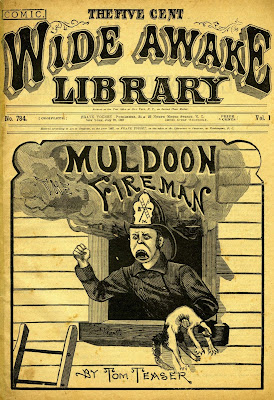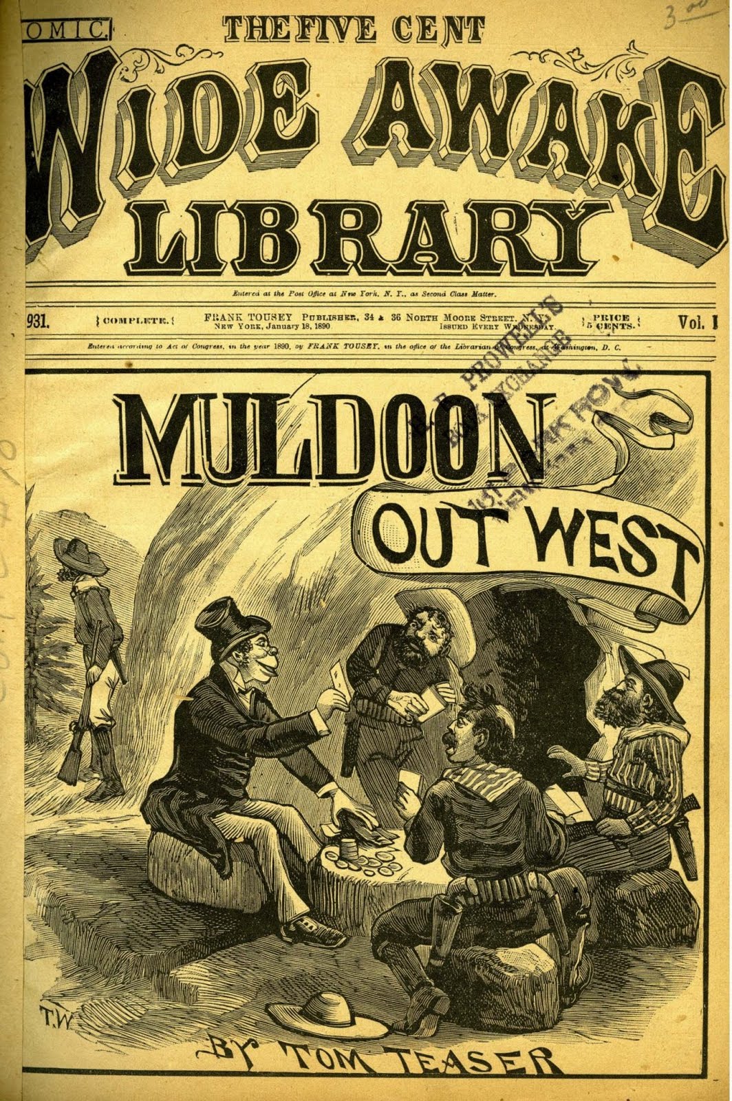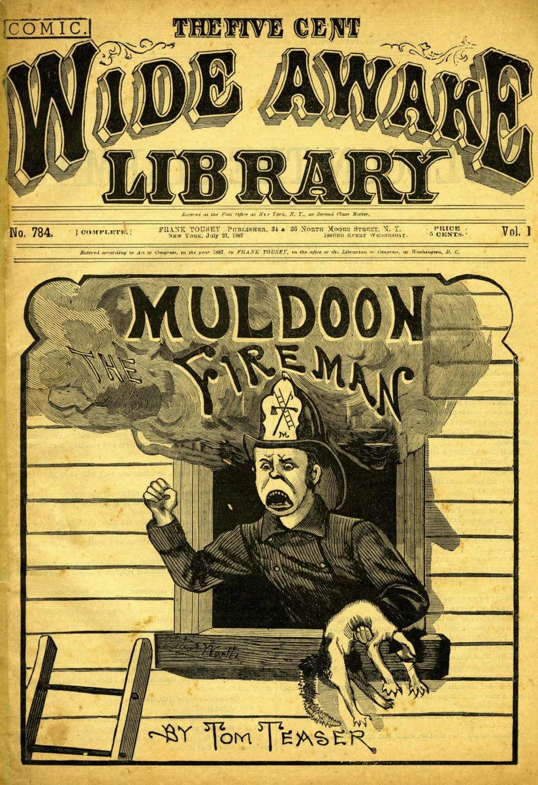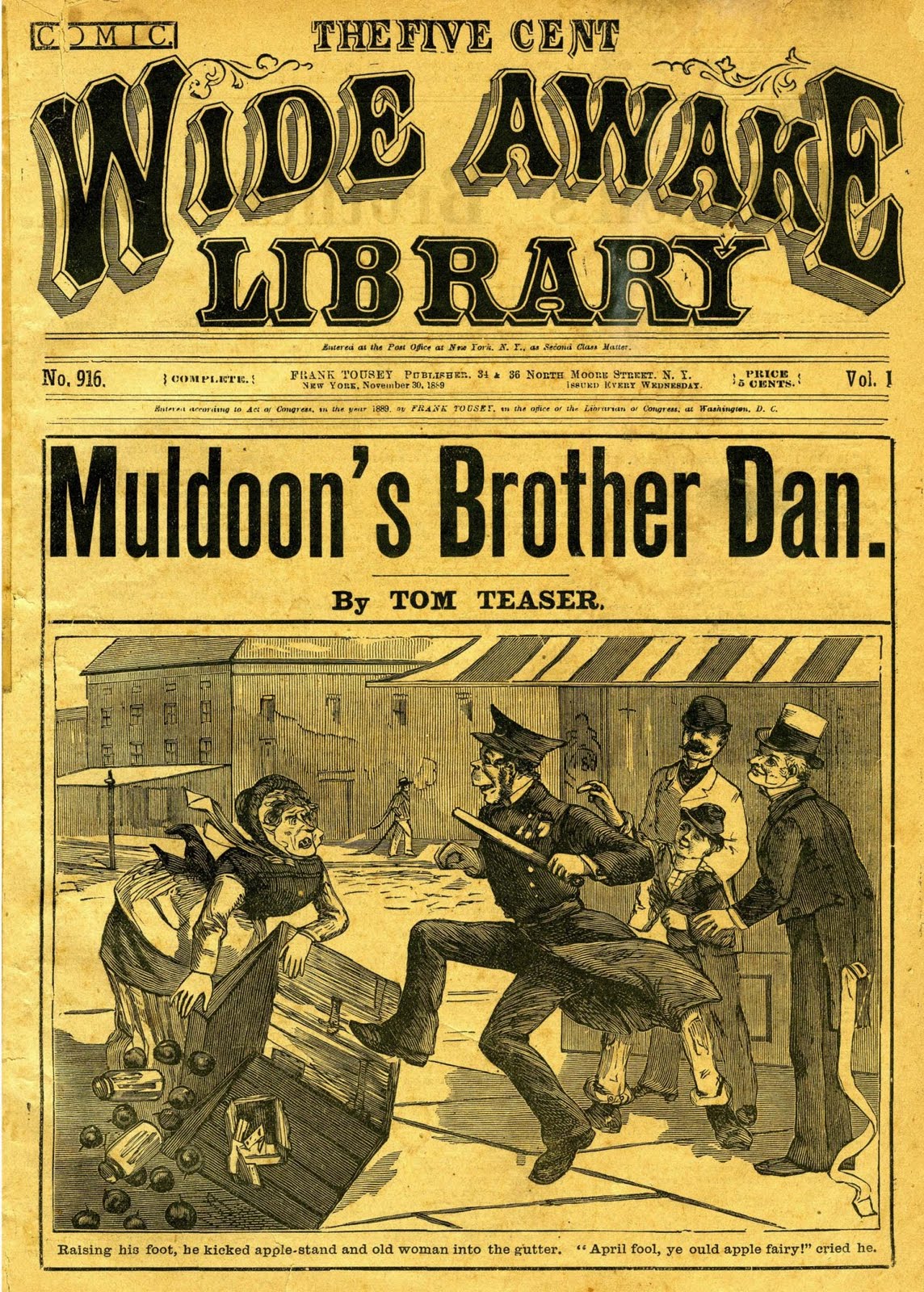 In The Dime Novel Companion (Westport, CT: Greenwood Press, 2000) J. Randolph Cox notes that Terence Muldoon arrives in America, aged fifty, and “experiences all of the popular notions of the ignorant immigrant and survives it all. Muldoon never knows when he is being fooled, but…he is quick to learn and before long becomes an alderman.” His wife Bridget remarks that “If there were an ‘Ancient Order of Old Fools,’ Terence Muldoon would not only join, but get himself elected president as soon as they received his application.”