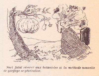 8 [1902] Brain blast. A new way to graft trees blows a botanist’s top off. Christophe, in ‘Fantaisies de botaniste,’ captioned cartoon in the French weekly Soleil du Dimanche.